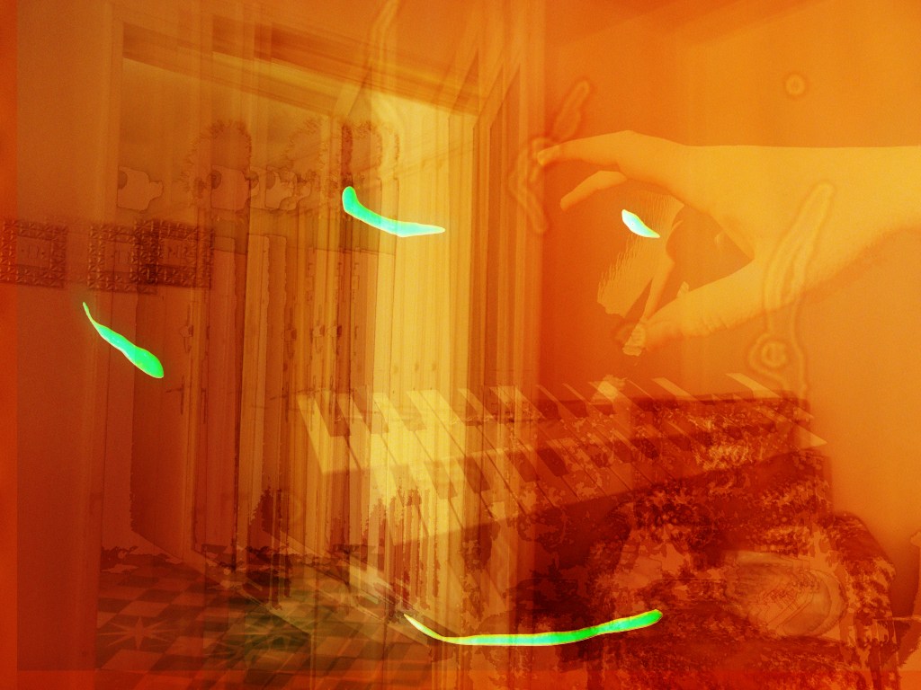 Voir, c’est également être sensible au moindre détail que l’œil convoque. La persistance rétinienne permet de capter un photogramme dans le creux de nos paupières pour un temps. Cette aventure fait partie d’une quête anatomique en lien avec les réactions charnelles aux sources lumineuses environnantes. Ainsi, un travail esthétique passant par la photographie numérique est entrepris autour des phénomènes entoptiques, provenant d’un œil anatomique objectif, comme les myodésopsies, ou les phénomènes de source étincelante, comme les phosphènes et la persistance rétinienne qui se retrouve à être le centre de mes préoccupations photographiques. C’est comme si, l’œil subjectif, muni d’une conscience esthétique qui, s’intéressant à son « être au monde » objectif, se pense et se regarde. Voici l’éclosion d’une première réflexion mutuelle.