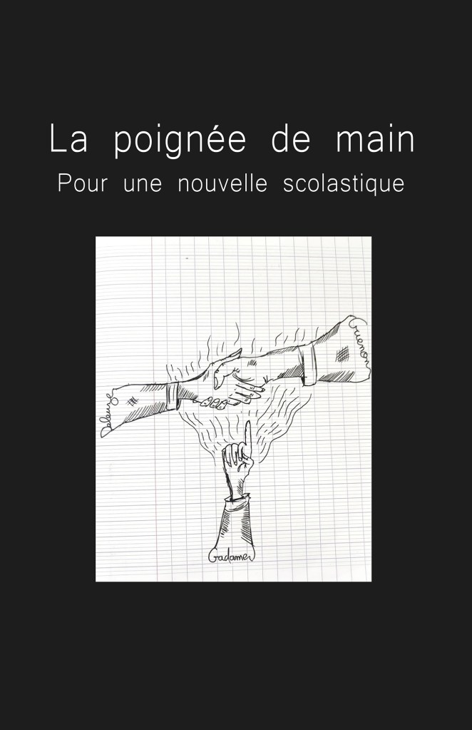 Ainsi, sans postuler l’existence d’une synthèse totale, il tente simplement de rendre visibles des articulations possibles entre deux paradigmes celui de l’immanence et celui de la transcendance. Deux paradigmes, a priori, de sens épars => à l’image d’une poignée de main symbolisant autant une rencontre provisoire qu’une reconnaissance mutuelle de leurs différences. Cette approche, à mi-chemin entre l’essai littéraire et la recherche philosophique, se distingue par son refus de tout dogmatisme comme de tout renoncement à la rationalité. Elle suggère que la méthode scolastique, dépouillée de ses présupposés historiques, pourrait encore offrir une grille de lecture féconde pour penser notre condition intellectuelle et culturelle contemporaine.